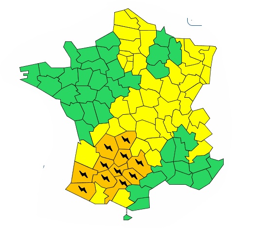 Météo France a étendu son alerte aux orages violents à 11 départements du sud ouest de la France. Le Tarn, le Gers et la Haute Garonne sont désormais concernés. L’alerte est valable jusqu’à samedi 21h.
