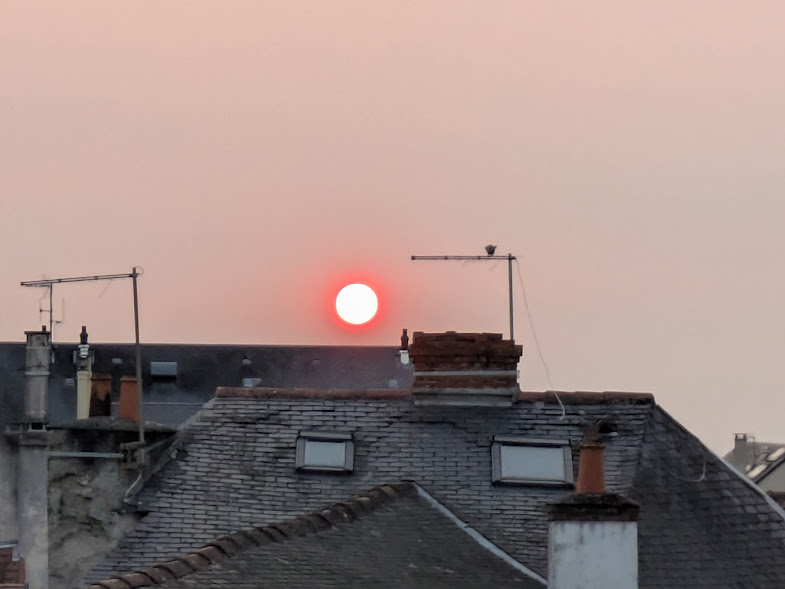 Atmosphère étrange ce dimanche matin à Tarbes et dans une grande partie de l’ouest de la France. Le ciel, devant le soleil s’est teinté d’une lueur grise jaune. Ce sont les fumées des violents incendies qui font rage dans le péninsule ibérique, en Espagne et au Portugal.