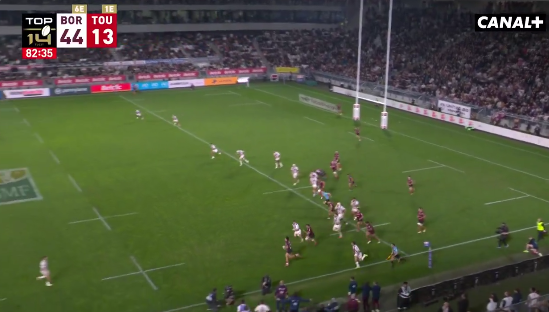 Malgré la défaite et 6 essais encaissés par le Stade Toulousain à Bordeaux, deux bonnes nouvelles pour les Rouge et Noir, avec le retour en forme de Ntamack qui après sa blessure, marque un essai et plusieurs tirs aux buts. Seconde satisfaction : l’exploit, en toute fin de match du centre international Kalvin Gourgues qui marque un essai à l’issue d’une course de près de 70 mètres dans la défense de l’Union Bègles Bordeaux :